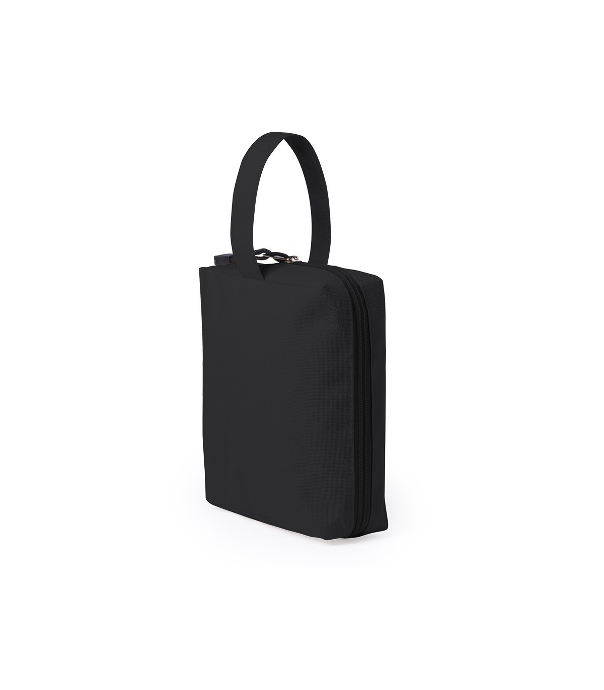 Neceser en poliéster 600D, con diseño cuadrado y cremallera a juego. Tirador con cinta para fácil apertura y disponible en variada gama de colores.
