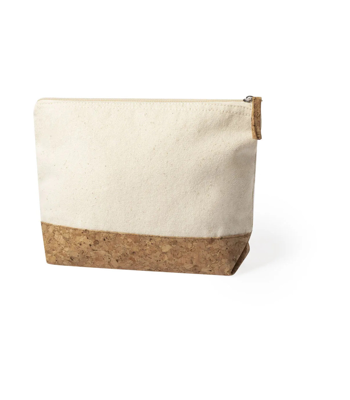 Neceser de línea nature en combinación de corcho natural y algodón crudo. Con cierre de cremallera y tirador en corcho a juego.